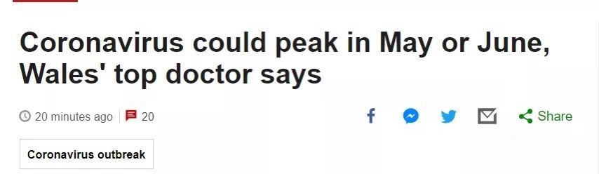 據BBC上報道,原來威爾士首席醫療官 弗蘭克.阿瑟頓醫生(Dr Frank Atherton)預計,新型冠狀病毒可能在五月或六月上升至高峯。