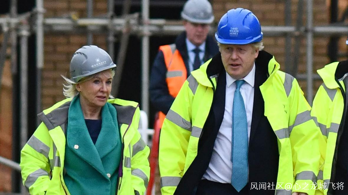 英國衞生部長納丁·多里斯與英國首相約翰遜。資料圖
