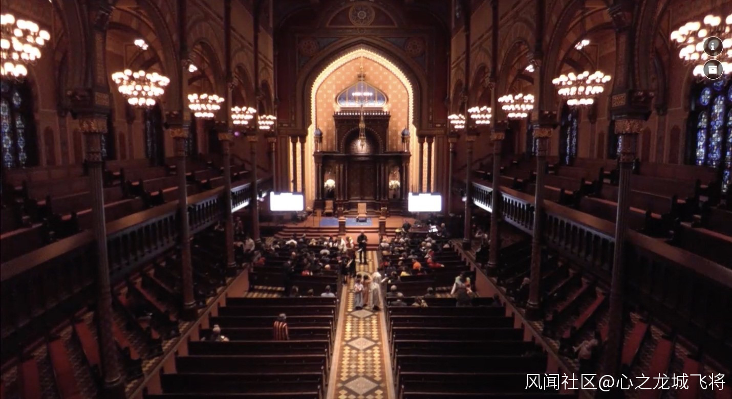 不光是慶典取消了,就連當天的節日禱告,許多會堂都選擇了在網絡上直播,鼓勵人們在家中參與。我的這位朋友就將她的猶太會堂在網上直播的鏈接發給了我。可以看到,雖然還是有一些家長帶着孩子去到現場參加禱告儀式,但是會堂內部還是顯得有些冷清。