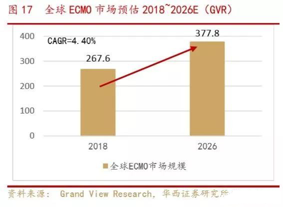 2018年國內ECMO市場規模已經達到2.4億元,2018年全國三甲醫院為1442家,若都配備了ECMO,這個市場的規模可以達到每年18億元的規模。