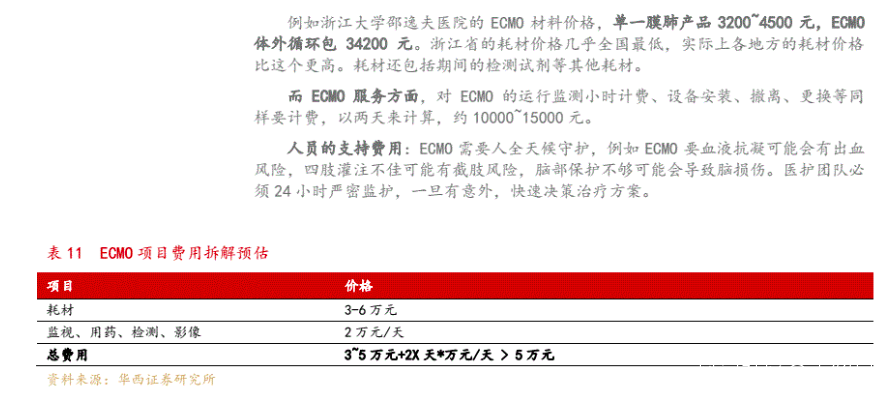 民間有“機器一響,黃金萬兩”的説法,形容ECMO的費用昂貴。