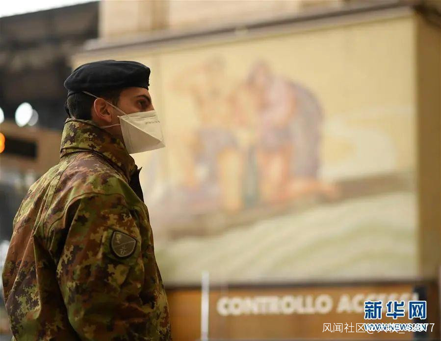 ▲3月9日,戴口罩的軍人在意大利米蘭中央火車站執勤。(新華社發達尼埃萊·馬斯科洛 攝)