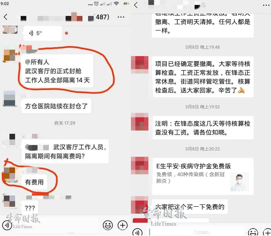 據媒體《生命時報》報道,武漢漢陽體校方艙醫院關閉之後,50多名從事安保、保潔等工作的“志願者”,剛走出艙門便遇到難題——原本他們應和醫護人員一樣,先進行14天隔離,可他們收到的卻是“馬上回家”的一紙通知。