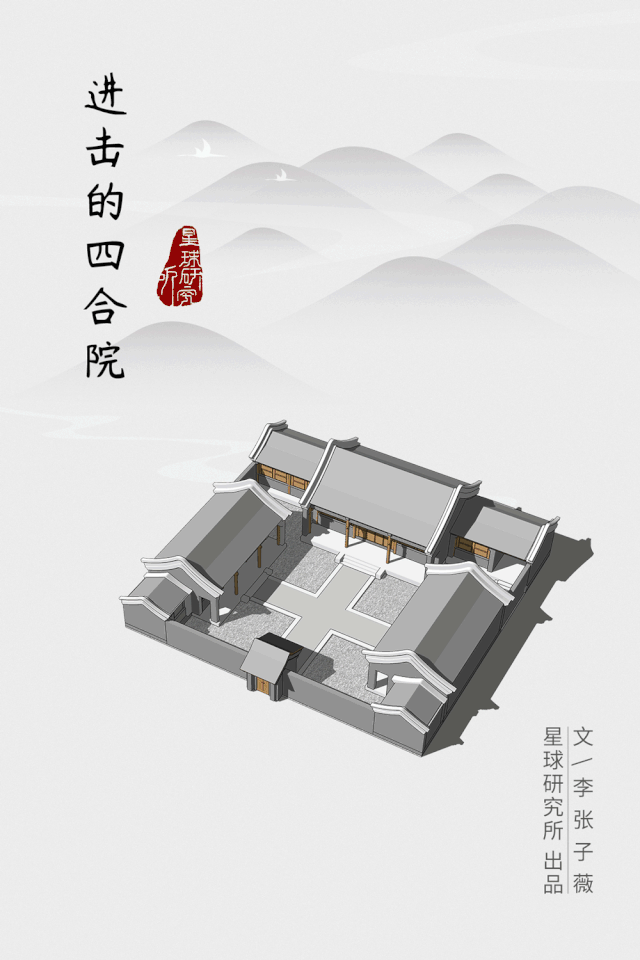 (三合院、四合院、兩進四合院和三進四合院示意,製圖@張靖/星球研究所)