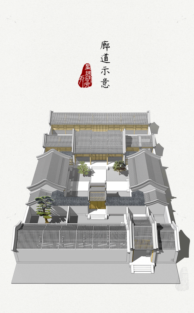 (陝西岐山縣鳳雛村西周宮室復原,為典型的合院式建築,也是我國已知最早、最嚴整的合院式建築實例,製圖@張靖/星球研究所)