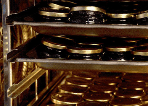 接着把這些裝滿「人造魚子醬」並擰好蓋子的罐子,放入巴氏殺毒的機器中,控温加熱一段時間,這樣魚子醬無需加入防腐劑也能安穩存放兩年…