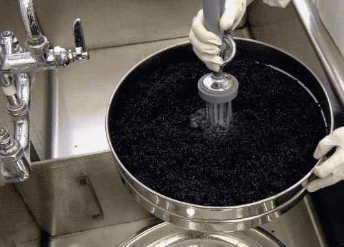 再把它們倒入過濾器中,去沖洗和過濾,讓過小的「魚子醬」從過濾洞中掉出,咱得保證大小一致,齊齊整整不是…