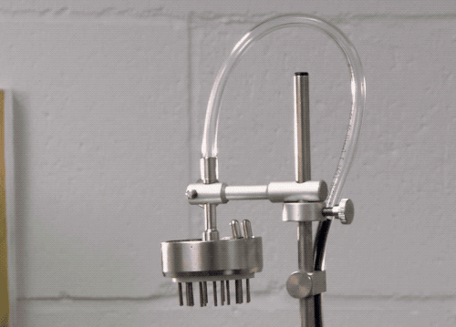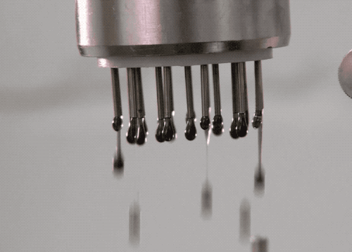 這個花灑一樣的擠出口,會以一定的速度擠出液滴…