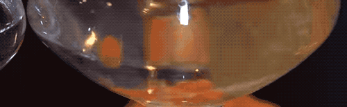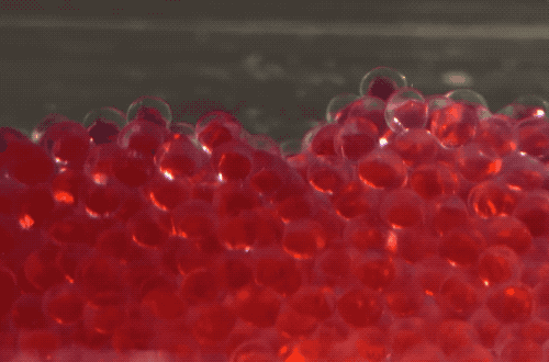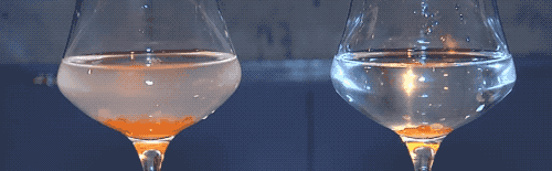 回到正文…等液滴進入到乳酸鈣溶液中,這表面覆上薄膜就迅速鎖住了,也就固定成球的樣子了,之前還有小可愛現身説法如下: