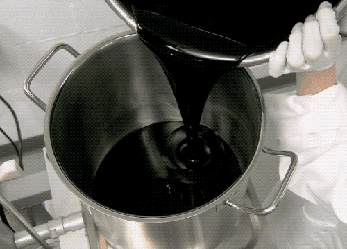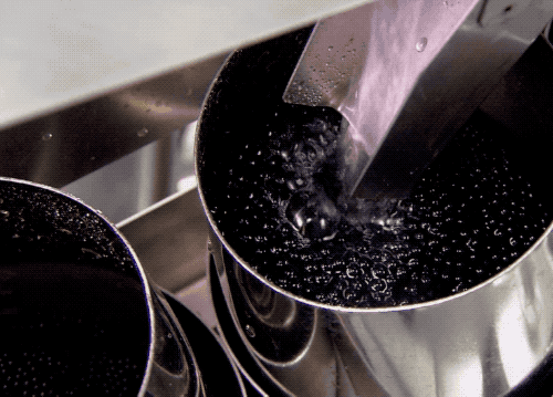 接着把膠狀物質轉移到一個大桶中。這粘稠的黑色,我就不説像瀝青了,一秒鐘讓人想起小時候喝的枇杷膏…