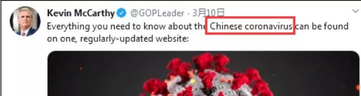 國會議員麥卡錫,更是直接將新冠病毒稱為“中國冠狀病毒”!