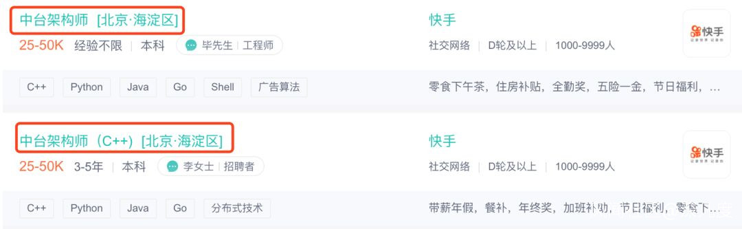 事實上,在BOSS直聘搜索快手和抖音,會發現雙方所處階段完全不同,招聘重點也不太一樣。快手把招聘重點放在了研發工程師、測試工程師、架構工程師等技術人員上。