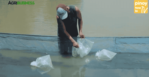 菲律賓的羅非魚魚場在魚塘裏釋放魚苗