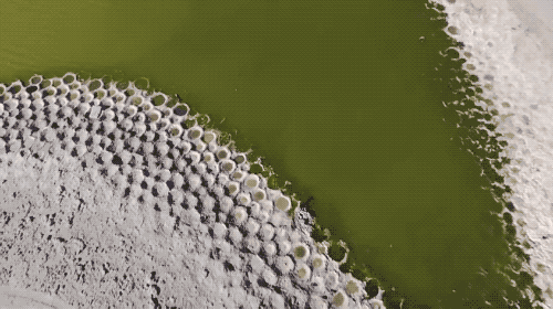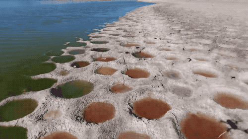 美國加州的索爾頓湖(Salton Sea)乾涸後露出的羅非魚巢穴