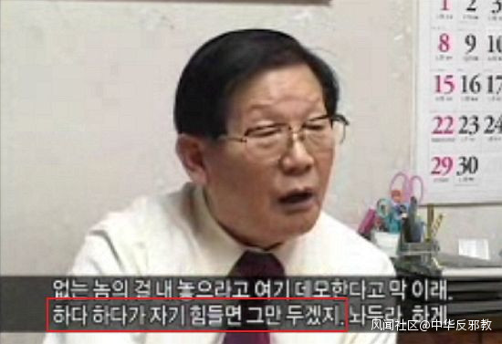 在這裏,教會向信徒不斷傳出“世界末日已經來到,唯一能拯救人類的只有我們”的信號,然後再不斷暗示教主李萬熙就是“耶穌再降臨”。