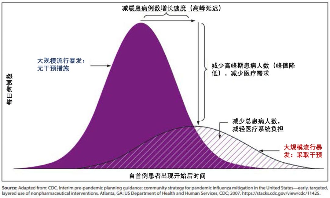 採取干預後高峯延遲、峯值降低(圖片來自美國CDC)