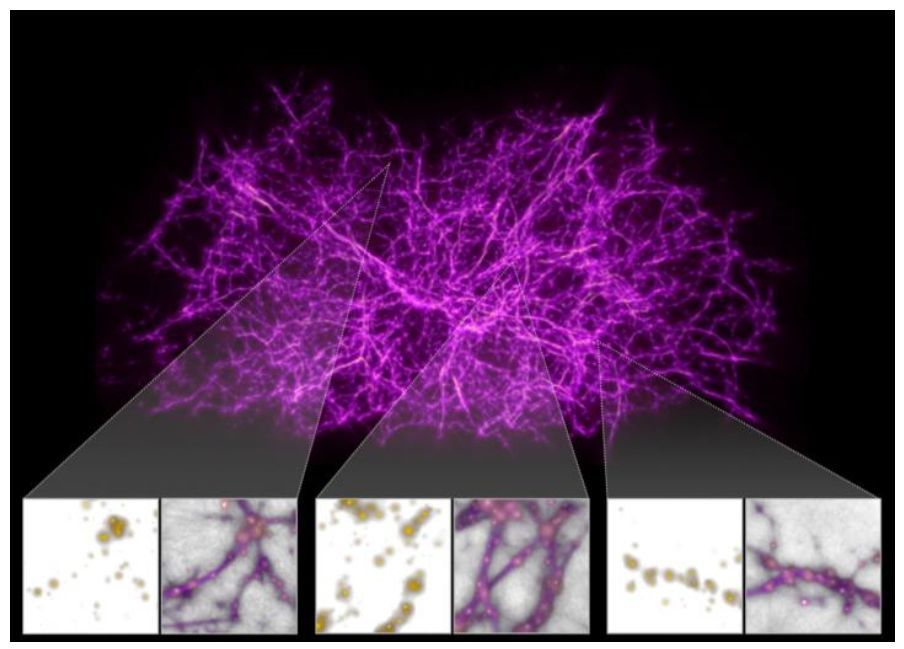 受粘液黴菌生長模式啓發,加州大學聖克魯斯大學的一組天文學家和計算機科學家開發出了新算法,用來追蹤連接整個星系的宇宙網細絲。他們的研究結果**[1****]**於3月10日發表在《天體物理學期刊快報》(Astrophysical Journal Letters)。