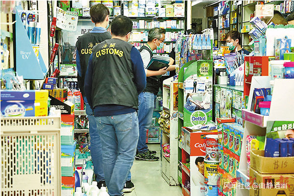 海關由今年1月27日開始展開「守護者」特別執法行動,成功堵截有毒消毒酒精流出市面,並拘捕20人。在巡查和檢驗消毒搓手液的同時,海關還全面巡查、試購及檢視於全港各區出售的外科口罩,並已就市面上出售的外科口罩試購超過90個樣本。
