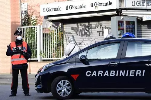 3月10日,在意大利米蘭,警察佩戴口罩在街上執勤。新華社/法新
