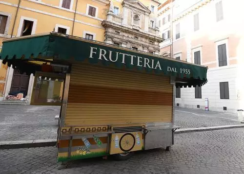 這是3月12日在意大利羅馬街頭拍攝的關張的水果攤。新華社發(埃莉薩·林格里亞攝)