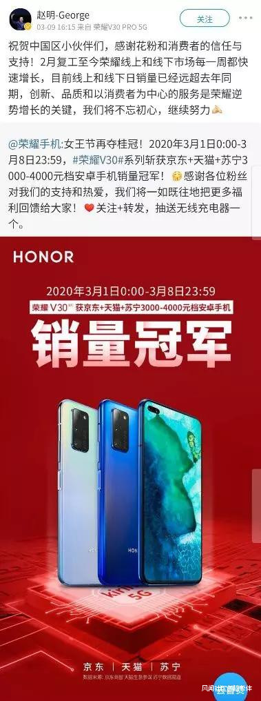 而突如其來的疫情,也沒有阻礙增長的步伐。前不久榮耀總裁趙明在其社交媒體上透露了榮耀二月復工至今的業績情況,依然是每週快速增長,甚至超過了去年同期。