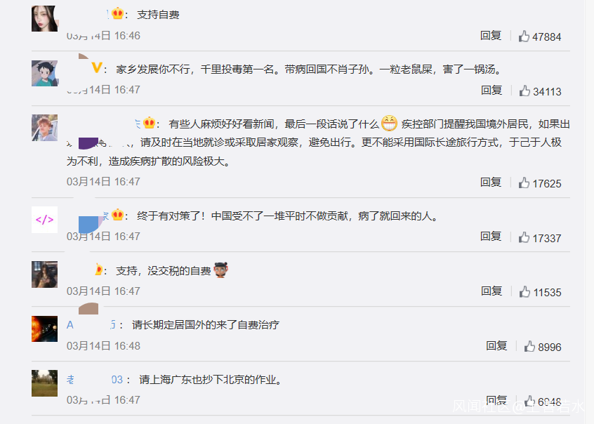 昨天下午,在北京市新型冠狀病毒肺炎疫情防控工作新聞發佈會上,北京市政府副秘書長陳蓓宣佈了一項關於境外歸國人員新冠肺炎診治的政策,引發羣眾熱議。北京市的政策是對於參加了基本醫療保險的在外中國籍人員,在回國過程之中,被確診為新冠肺炎病例和疑似病例的,所發生的醫療費用,按照基本醫療保險的相關規定,報銷以後再實施財政的補助。個人不需要負擔相關費用。對未參加基本醫療保險的中國籍人員,在回國入境過程之中被確診為輸入型的新冠肺炎病例或疑似病例的,所發生的醫療費用,原則上由患者個人負擔。參加了商業保險的人員,可以按照商業保險的合同規定支付相應的費用。而對於經認定的困難人員,所發生的醫療費用,按照傳染病防治法的法律法規的相關規定,予以醫療救助。下一步我們還將與國家的相關政策做好進一步的對接。