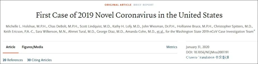 2020年1月21日,美國疾控中心公佈了美國境內第一例新型冠狀病毒感染的肺炎病例。該病例為一名30歲男性,在華盛頓州西雅圖市斯諾霍米什縣。