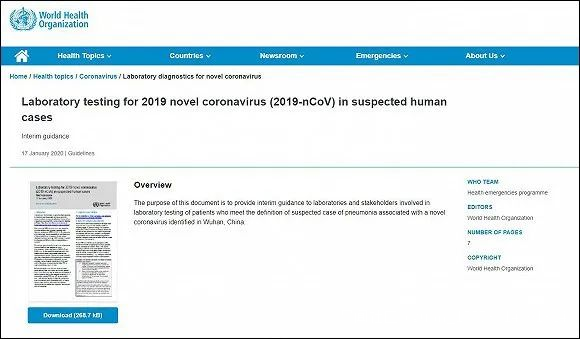 德國團隊的研究成果已於1月17日在世界衞生組織的官網上公佈