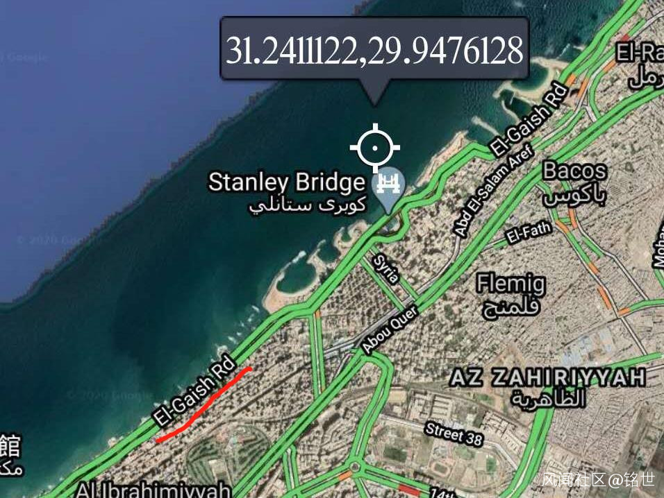 北緯31.2°,東經29.9°。壯闊的亞歷山大海港,是埃及第二大城市,空中俯瞰是沿海一條東北-西南雙向伸展的狹長地帶,放眼北望,艦船畫碧濤,羣鳥襯遠空,厚重汽笛與悦耳鷗鳴並起,鹹濕海風與曼舞微沙齊襲。