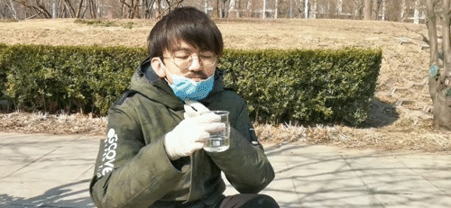 如果在輕度暴露後出現眼部不適,有條件的可以用流動飲用水或生理鹽水沖洗眼睛 5 分鐘。沒有條件的話,可以像田太醫這樣衝到就近的水池,儘快用自來水沖洗眼睛。動作簡單分兩步: