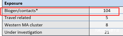 之後,這一“與Biogen有關的確診病例”數字,也成為了當地官方每天的疫情通報中的一個環節,數字則從3月9日的32例增加到了3月14日的104人,佔當天累計138個確診人數的75%——可以説Biogen公司的那場會議,已經成為了馬薩諸塞州的“華南海鮮市場”。