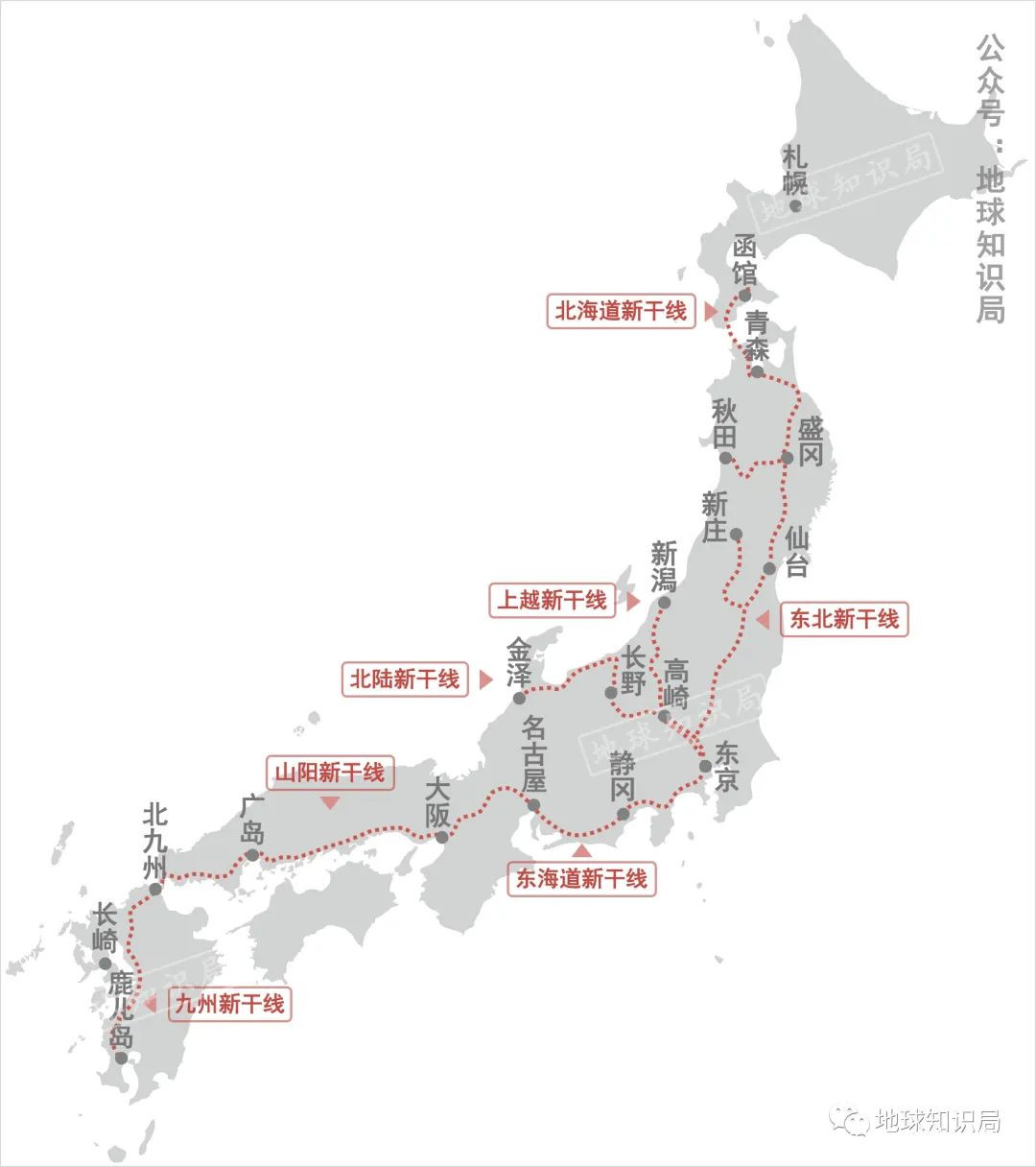 這之後日本又陸續建成了東北新幹線、山陽新幹線、九州新幹線、北海道新幹線、上越新幹線和北陸新幹線等高速鐵路。