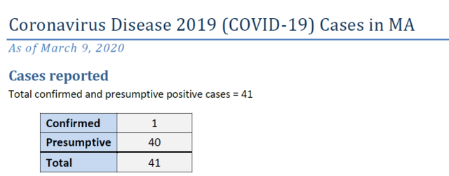 在檢測標準對Biogen的員工放寬後,馬薩諸塞州官方3月9日公佈的數據就顯示,當時他們就已經測出了32名與該公司有關的確診病例,佔了該州當時全部41名確診病例的近8成。