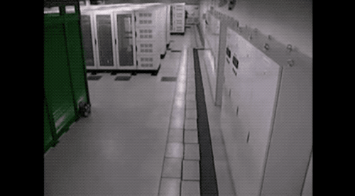 在地震發生的時候,服務器安然無恙。我們覺得服務器晃,實際上是錯覺,因為監控攝像頭被安裝在沒有基礎隔震的那部分建築物上。從將兩部分分離的地板的運動你就可以推測當時地震的強度,以及隔震設備的保護作用了。