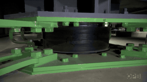 隔震支座是用層層相互交疊的橡膠和金屬片構成的,看起來有點像千層餅。在地震發生時,這塊千層餅會通過形變吸收震動的能量,削弱震波向上方的傳導,墊護上方的建築。