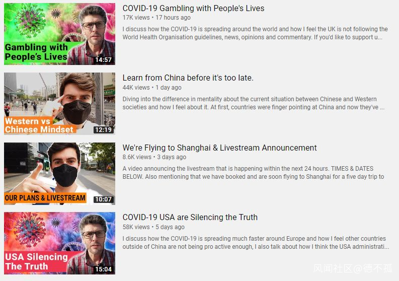 不過,在美國《華爾街日報》這篇報道之前,不少生活在中國的老外們就已經在介紹中國讓他們感到心安的防疫措施了。一位名叫“Barrett”的英國博主,還將他在深圳經歷的病毒檢測經歷拍成了視頻發到了境外的視頻分享網站Youtube上,並獲得了大量的點贊。