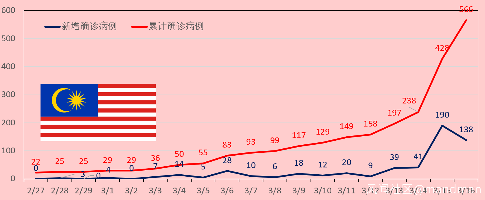 **馬來西亞:**新增138例,累計568例,百萬人口確診率為18,確診病例暴漲要歸功於前兩天的大型宗教活動,真是不見棺材不落淚。當地政府已經決定推遲或取消所有大型活動。