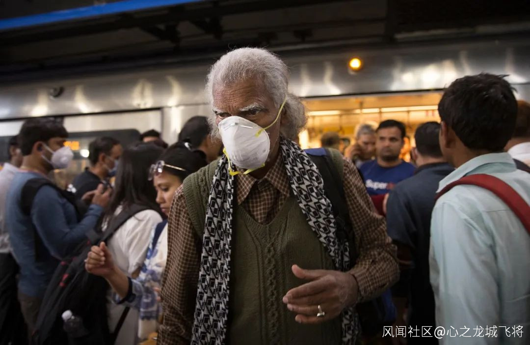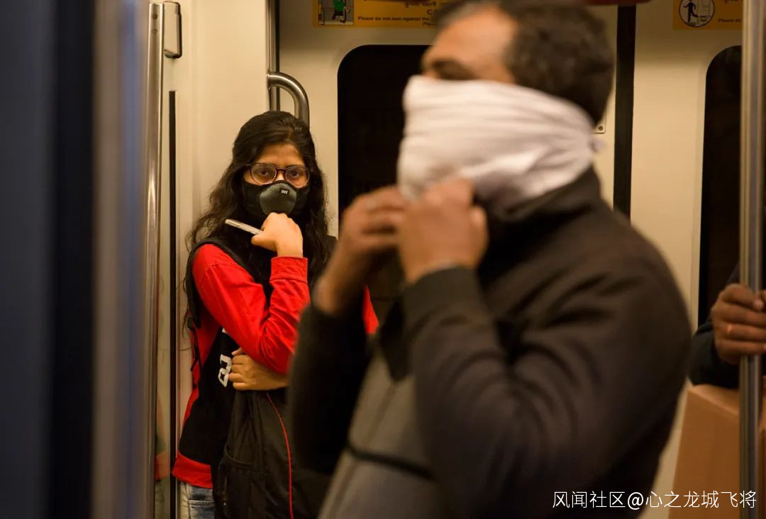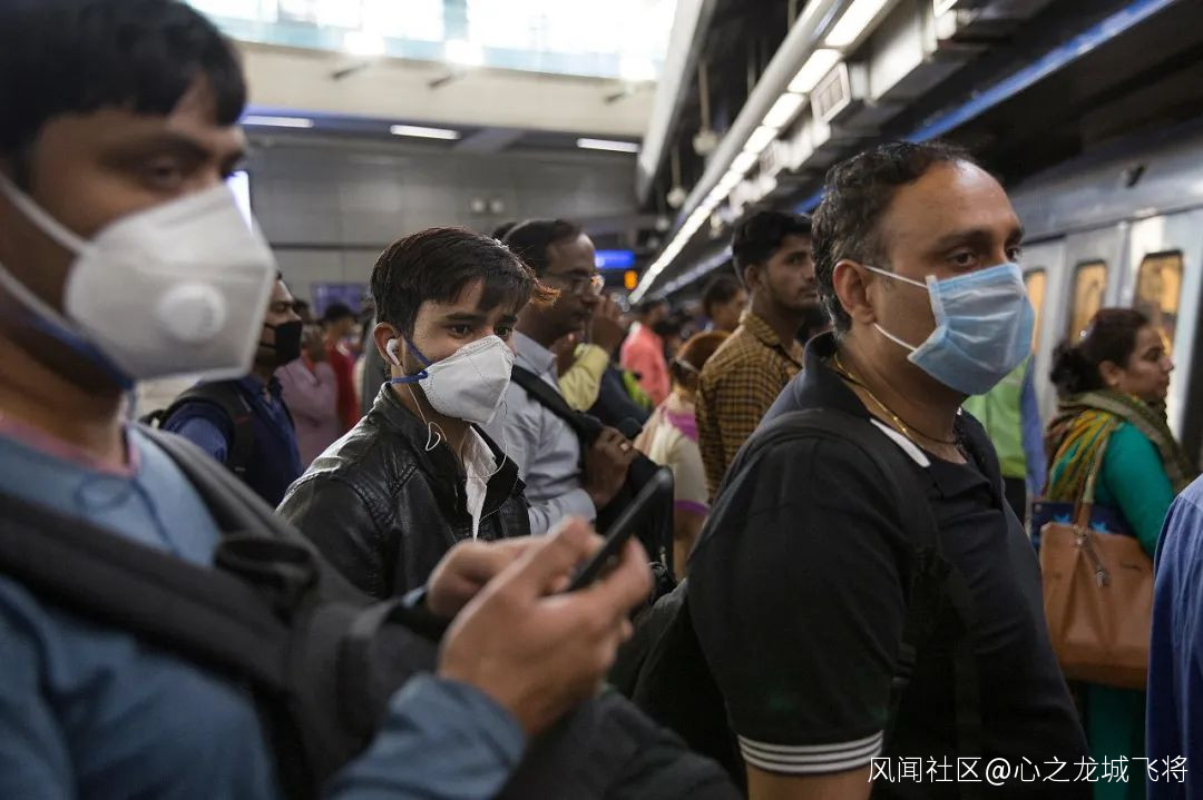 3月13日,在印度新德里一地鐵站內,民眾佩戴口罩出行