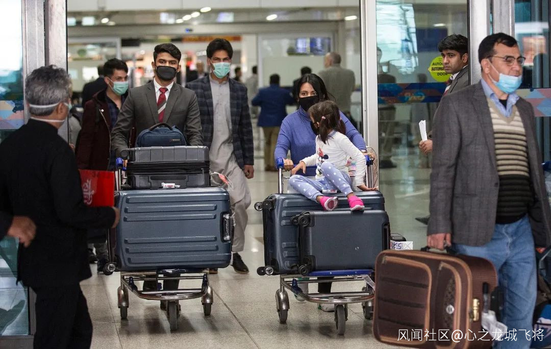 印度政府11日晚宣佈,從3月13日至4月15日,除外交等部分人員外,印度暫不允許其他持有效簽證者入境。圖為3月12日,印度新德里英迪拉·甘地國際機場,人們戴口罩出行