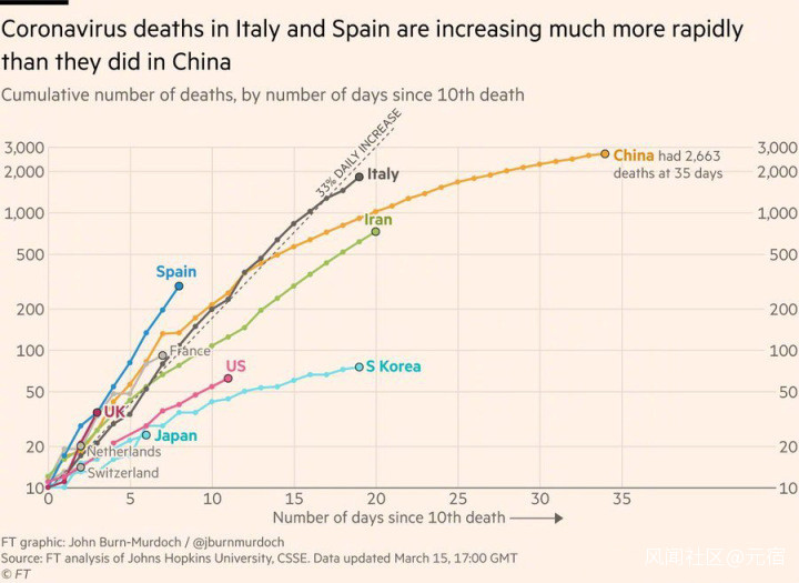 目前,從15日的數據上來看,意大利西班牙疫情發展速度暫時超過中國同期 ,但是受國情不同,意大利是世界上老齡化排名第二的國家,病死率顯著更高。