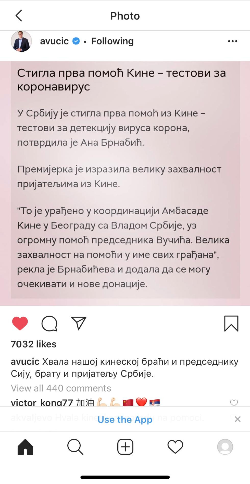 當地時間3月16日晚,總統武契奇和總理布爾納比奇分別通過社交媒體向“中國兄弟”表示感謝。(總枱記者 張穎)