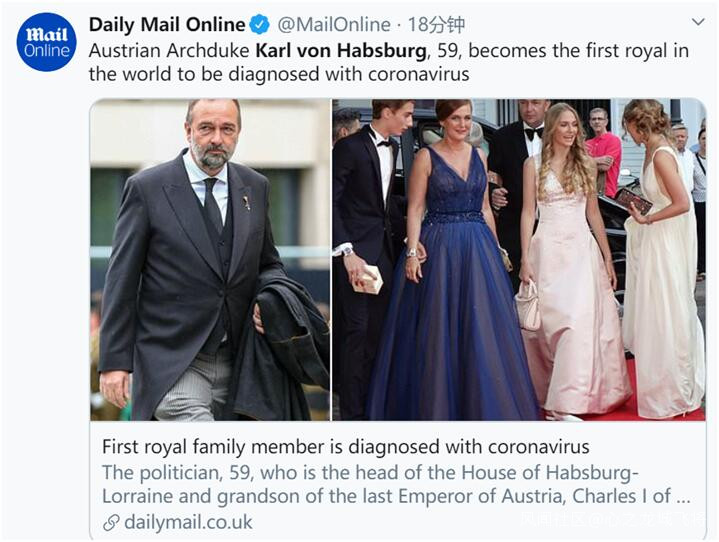 快訊!奧地利大公確診感染新冠病毒,繫世界首位“中招”皇室成員來源:環球網