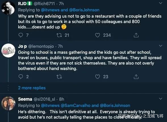 對比上週表示病毒在大型集會中的傳播風險相對低,大型體育賽事等取消意義不大,此次發佈會上鮑里斯表示,目前不支持大型集會,個人也應避免非必要的社交,包括酒吧,電影院等人流密集的場所。