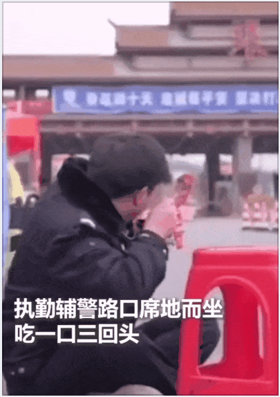 那些在哨卡執勤的民警,大冬天的,一邊吃着泡麪,一面得盯着路過的車,車一來,就得放下吃的,跑去進行體温檢測。