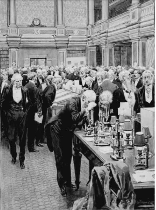 皇家學會的晚會上,科學愛好者們樂於聽到各種新學説和見到各種新潮科學玩意兒
