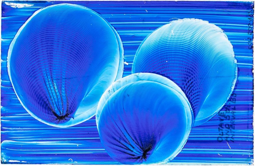 “有一天忙着製作這類圖形時,我注意到在每個運動中心的正中間有一個小小的形狀,像一朵勿忘我!在嘗試分離這些微小形態的過程中,我發現,通過在圓盤上只放少量的濕色漿,然後唱持續的音符,許多小圖形就會依次出現。”