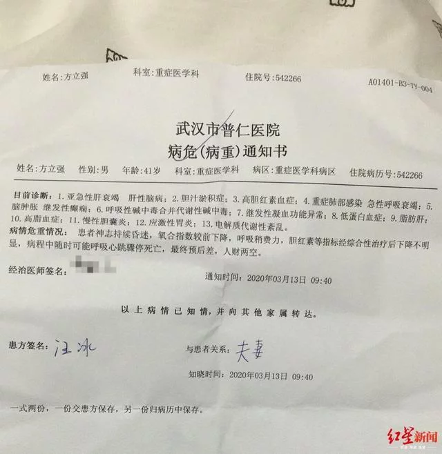 大圖模式↑3月13日的病危通知書,寫着“最終預後差,人財兩空”
