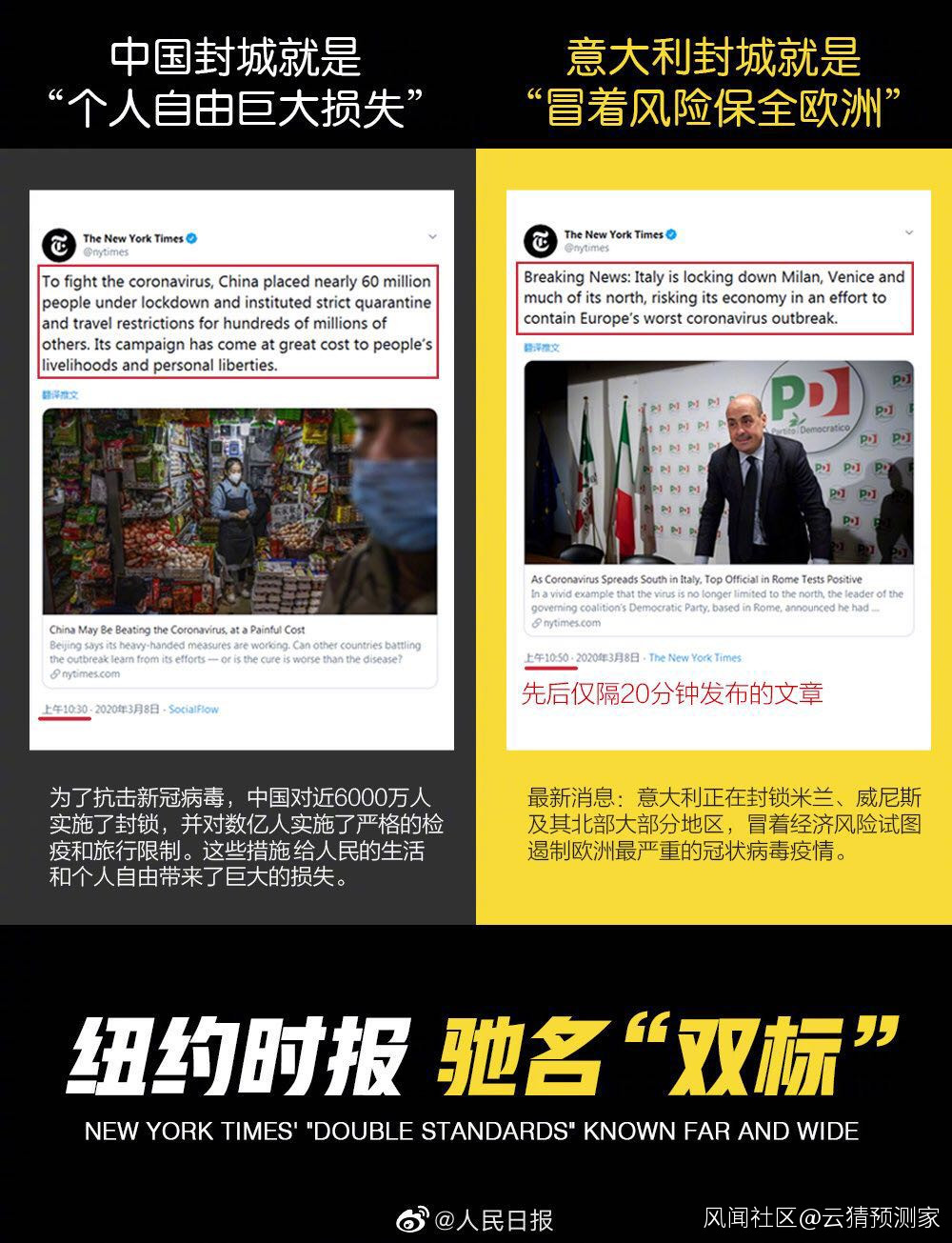 3月11日,WHO將新冠肺炎認定為“大流行病”(pandemic)。在過去的兩週中,境外的新冠肺炎確診病例呈爆發式增長,受感染的國家數量迅速擴大。而對於一些已經被證明行之有效的做法,在一些西方觀察者的視野裏依然是錯誤的示範,但如果其他西方國家也採取了類似手法,則又是一種觀感。近日,《紐約時報》就在不經意間將這種“雙重標準”展現了出來。