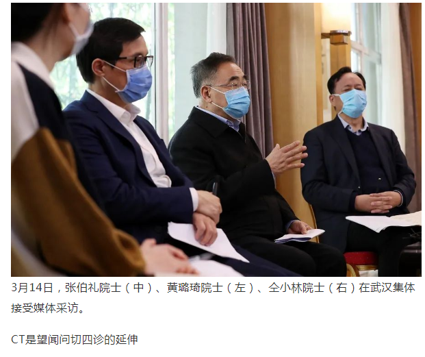 中央指導組專家組成員、天津中醫藥大學校長、中國工程院院士張伯禮説,CT核磁不只是給西醫預備,它們是望聞問切四診的延伸,完全可以為我所用,中醫思維至關重要。