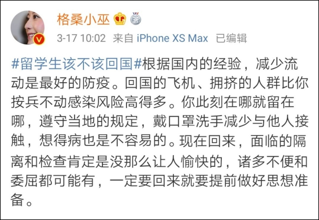 隨着國外疫情的加重,這幾天小事周遭的不少朋友都在討論是否要回國。